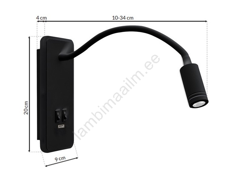 • LED-painduv seinavalgusti USB-pordiga BASE LED/8W+LED/2W/230V must