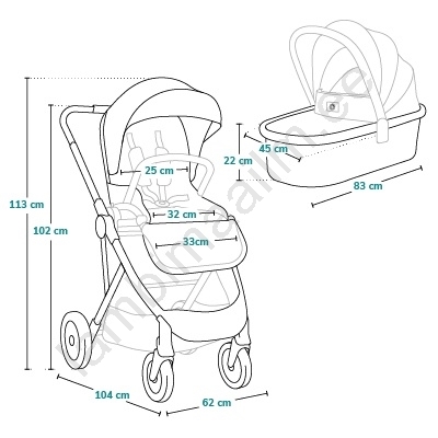 • Komplekti kuuluvad: kott, autotooli adapterid, sääsevõrk, vihmakate, kaks jalakatet ja mähkimismatt.