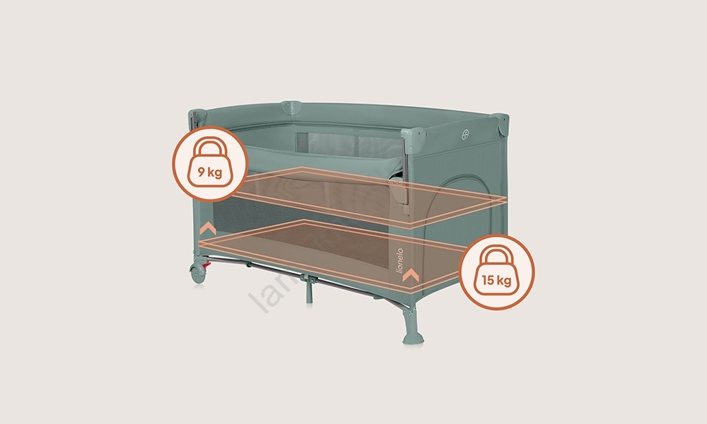 • Voodi on mõeldud lastele sündimisest kuni 36 kuuni või kuni kaal jõuab 15 kg-ni.