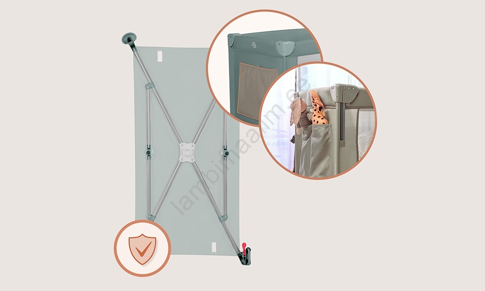 • Kokkupandav reisisäng, mida saab kasutada ka mänguaiana.