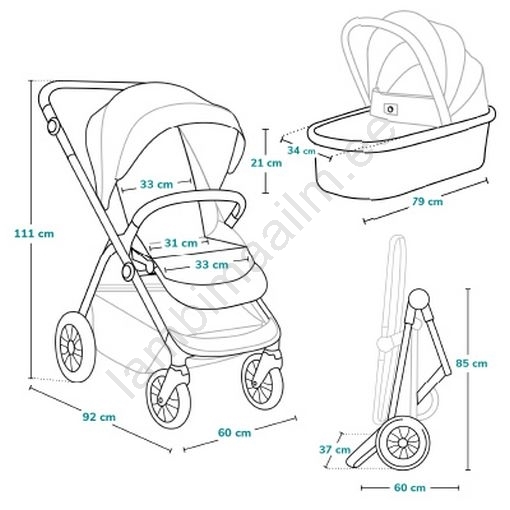 • 3-ühes vankrikomplekt – sügav vankrikorv, sportversioon ja Lionelo Astrid turvatool adapteritega.