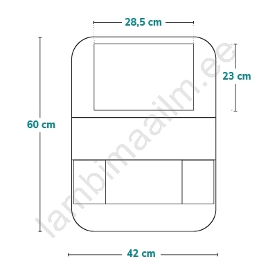 • Suur lukuga tasku, 2 väiksemat taskut pudelite või suupistete jaoks, väike praktiline tasku ja tabletitasku.