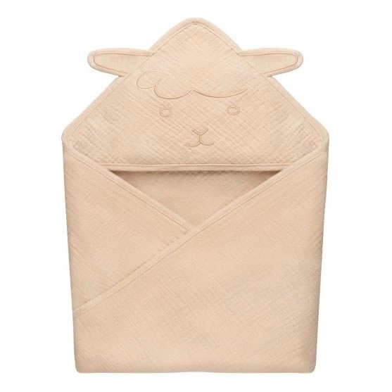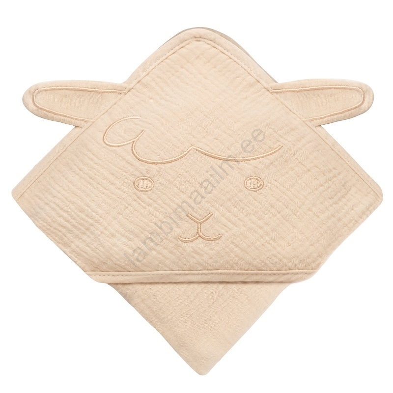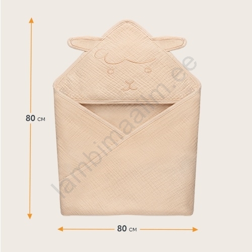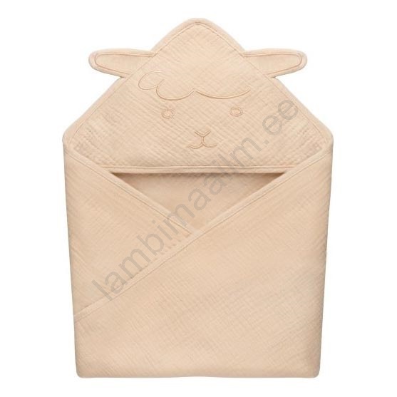 Lionelo - laste musliinist kapuutsiga rätik liivbeež