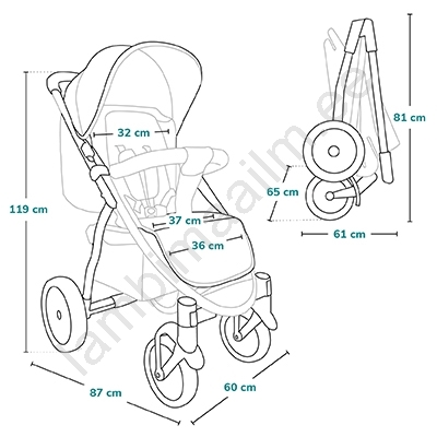 • Käru kogu pinnal paiknevad helkurdetailid tagavad ohutuse õhtustel jalutuskäikudel.