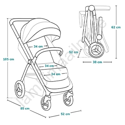 • Varustatud automaatse kokkuklapitava süsteemiga, mis tähendab, et nupu vajutamisel ja lukustuse vabastamisel voldib vanker end automaatselt kompaktseks.