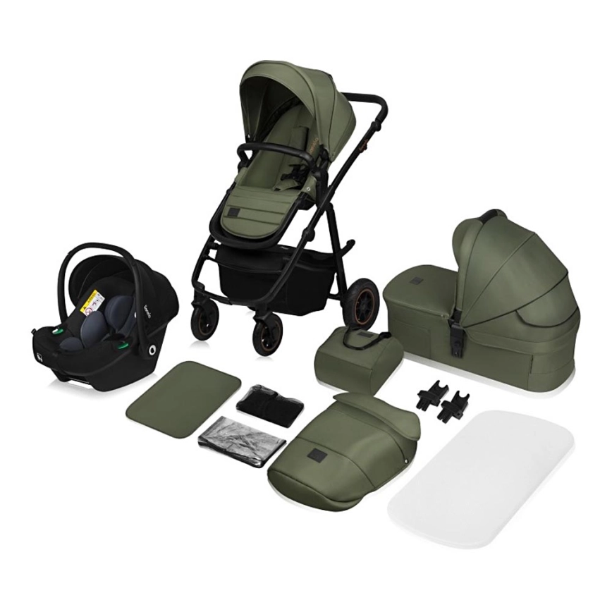 Lionelo - Kombineeritud jalutuskäru 3-ühes AMBER PLUS Roheline Mets