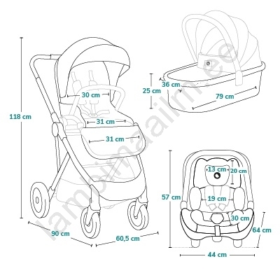 • Sisaldab lisavarustust: sääsevõrk, vihmakile, katted, kott, mähkimismatt.