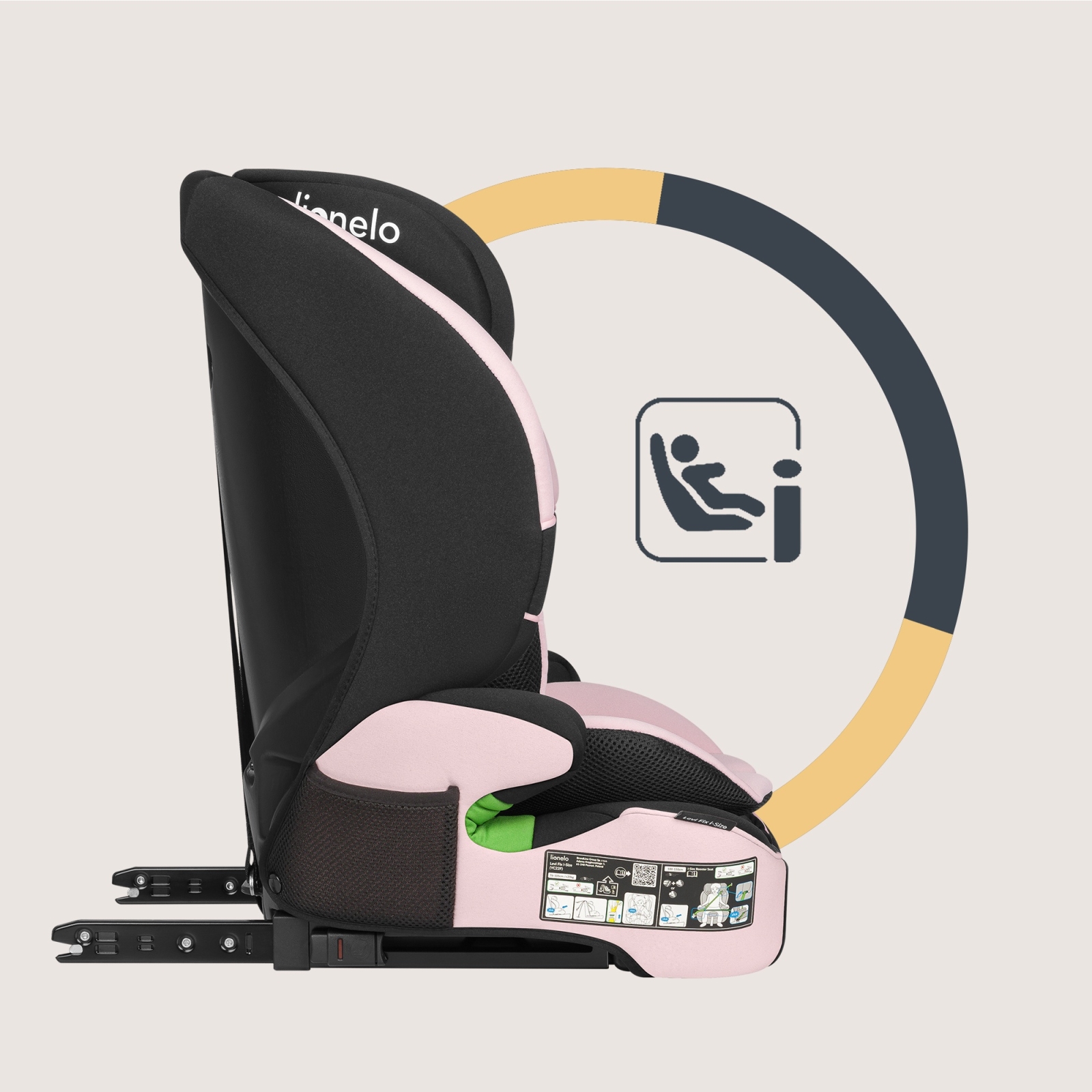 Lionelo - Laste turvatool LEVI FIX i-Size 76-150 cm beebiroosa