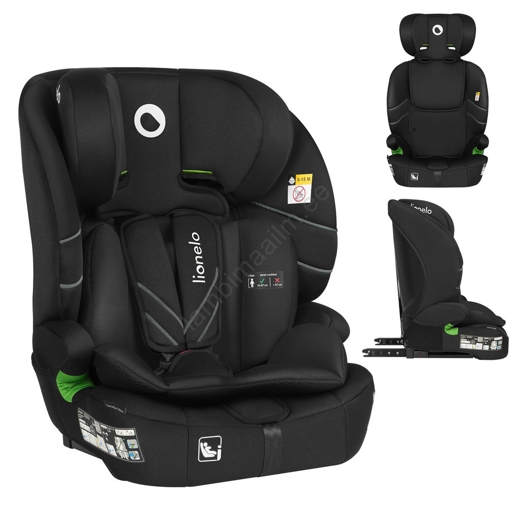 Lionelo - laste turvatool LEVI FIX i-Size 76-150 cm süsinikmust