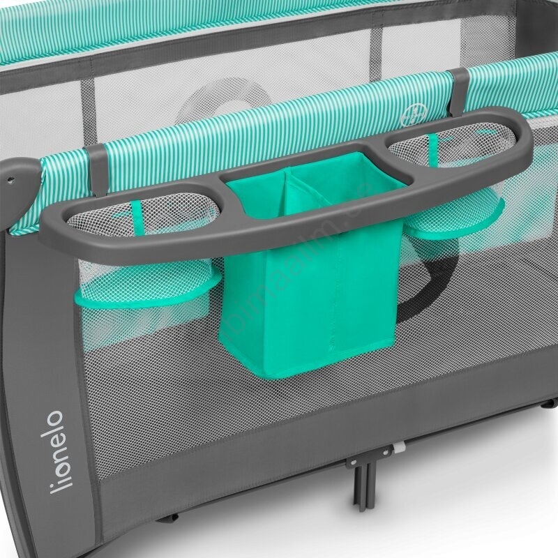 • Komplekt sisaldab: mähkimislauakest küljetaskutega (mähkmete, beebipudri jms jaoks), tarvikukorvi kahe sektsiooniga, suurt sääsevõrku, varikatust ja mängukaar pehmete mänguasjadega.