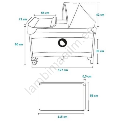 • Komplekti kuulub reisikokkupandav madrats, mida saab kasutada ka sisestatavas voodis (mõõt 120x60 cm); sisestatav voodi kuulub samuti komplekti.