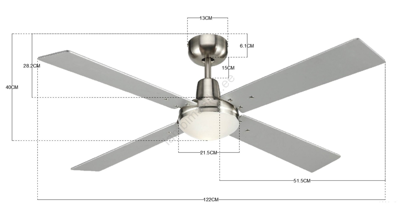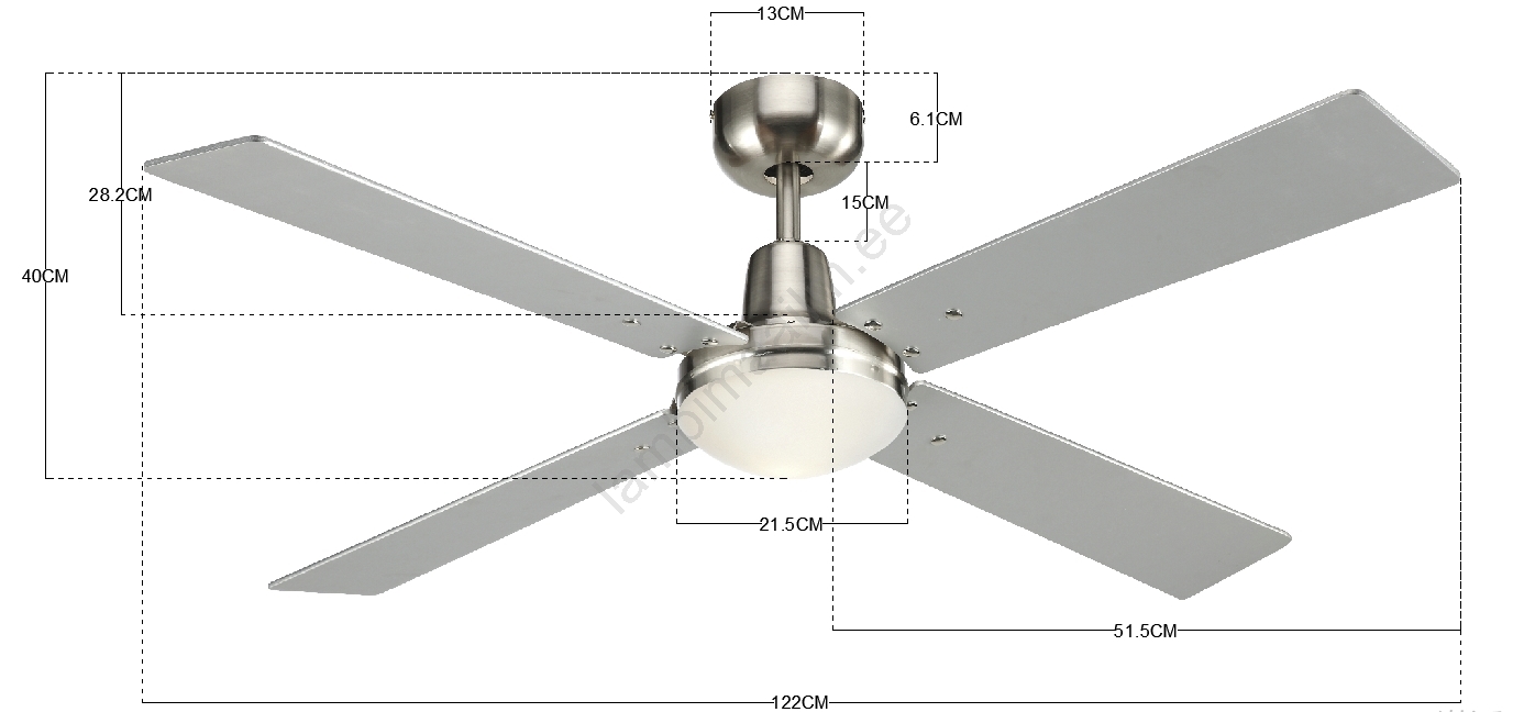 • Ventilaatori labad on valmistatud mahagonist vineerist, viimistletud halli/teaki toonis.
