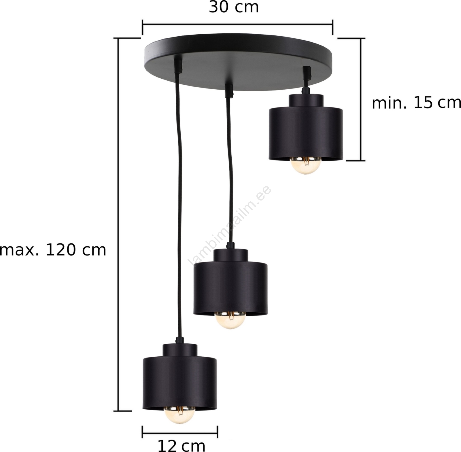 Lühter SIMPLY BLACK 3xE27/60W/230V d. 32 cm | Lambimaailm
