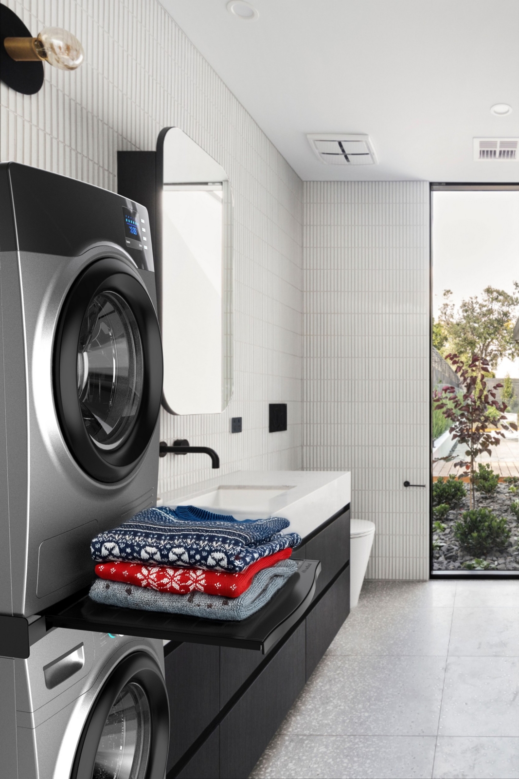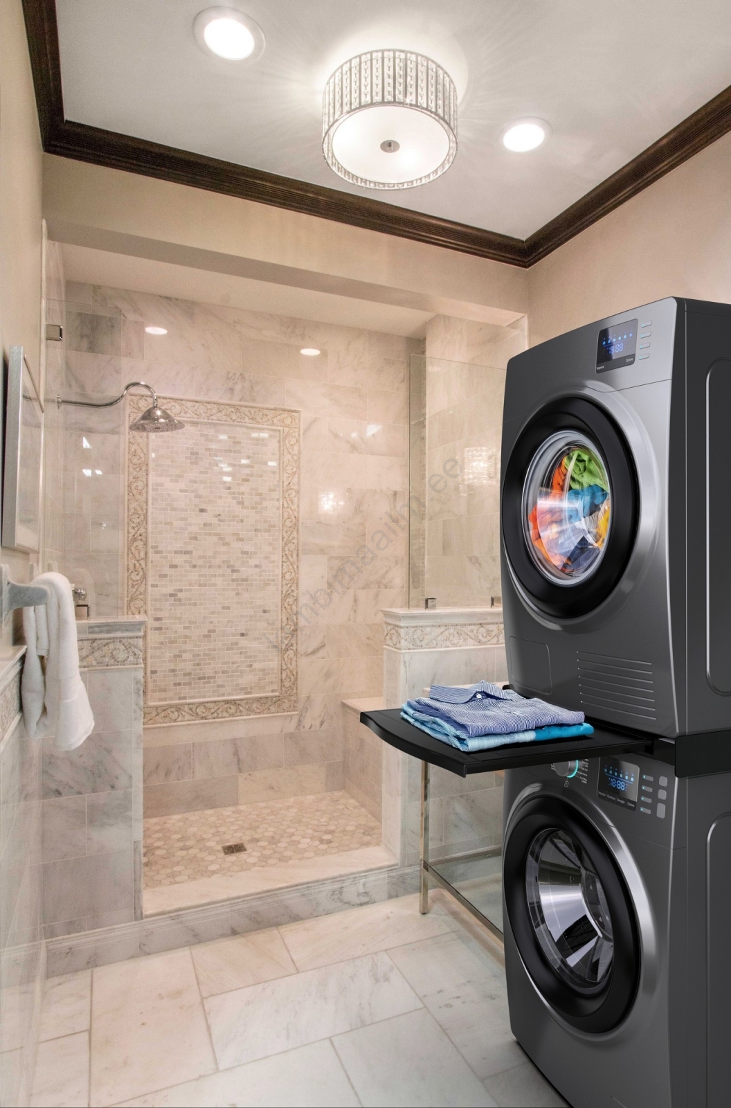• Praktiline väljatõmmatav riiul kandevõimega 10 kg mugavaks pesu käsitsemiseks.