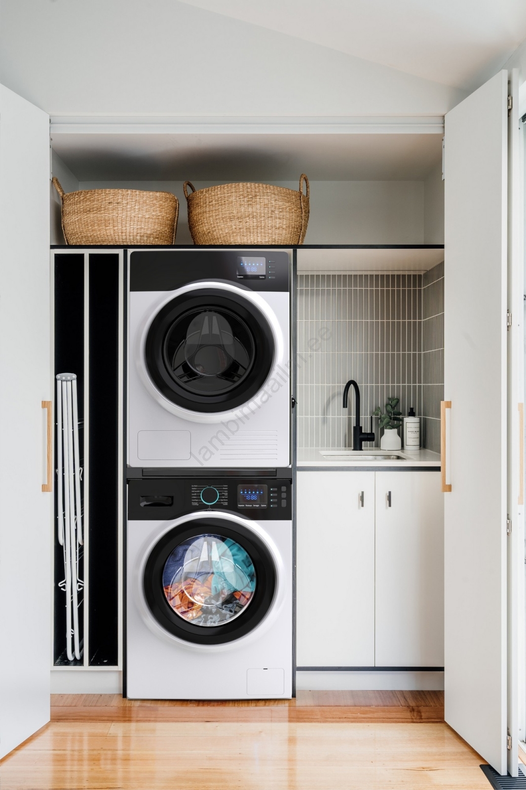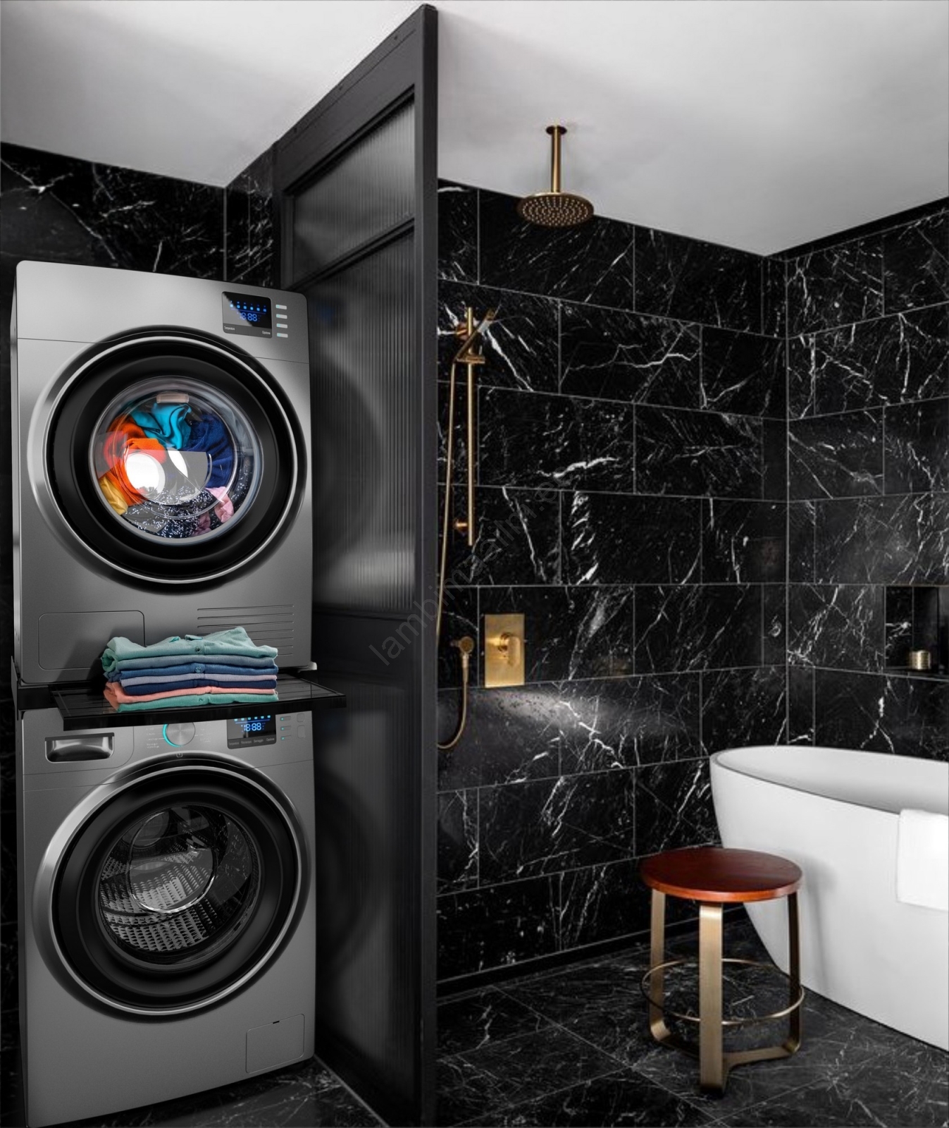 Meliconi 656136 - Vaheosa pesumasina ja kuivati jaoks koos tõmmatava sahtliga, 60 cm, must | Lambima