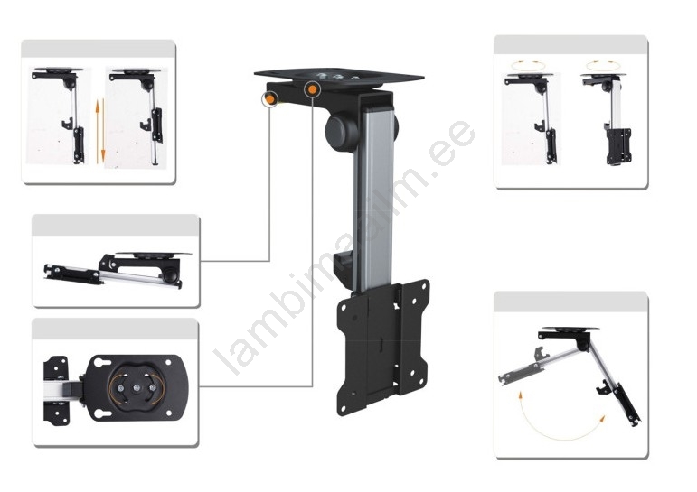• Kallutatav laekinnitus teleri paigaldamiseks laele, kaasa arvatud kaldus laed pööninguruumides.