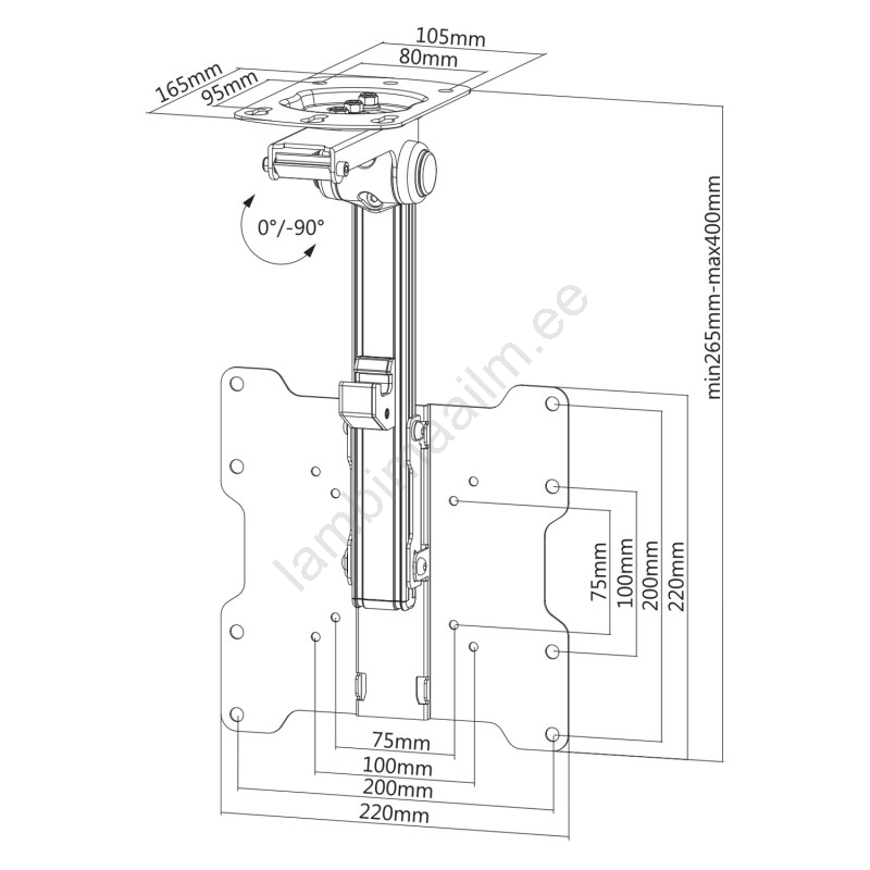 • Pakkub reguleeritavat kõrgust vahemikus 265–400 mm ja ekraani kallutamise võimalust 0° kuni -90°.