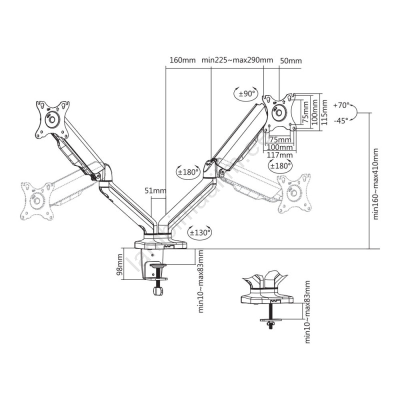 MK FLORIA MKF-21DP113S2 - Reguleeritav kahe 32" monitori kinnitus, must
