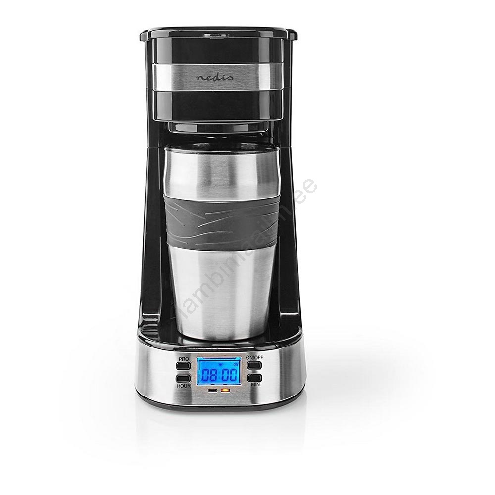 Nedis KACM310FBK - Ühe tassi kohvimasin 0,42 L taimeri ja reisikruusiga | Lambimaailm