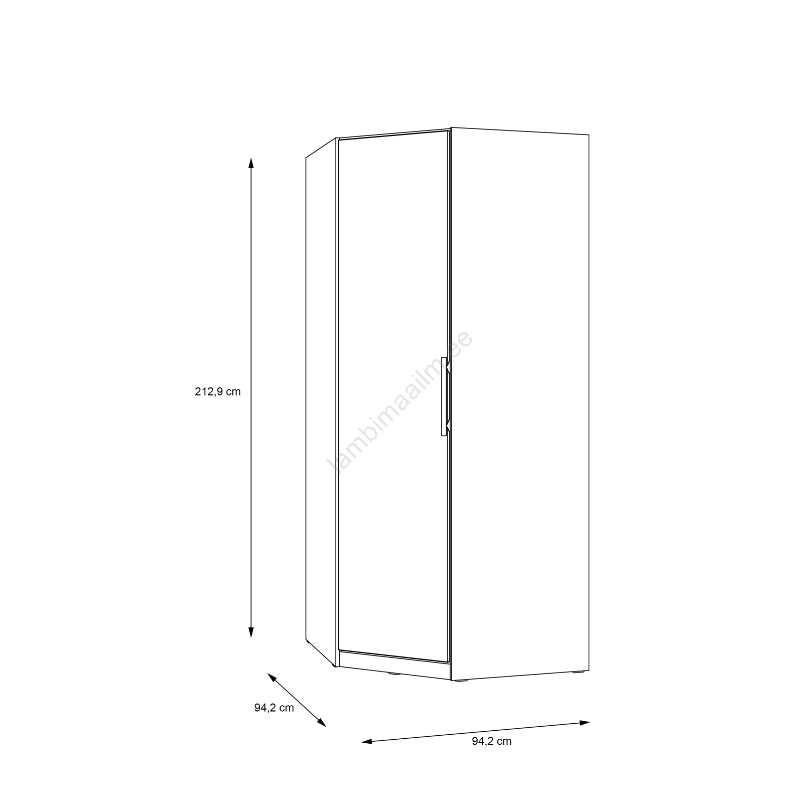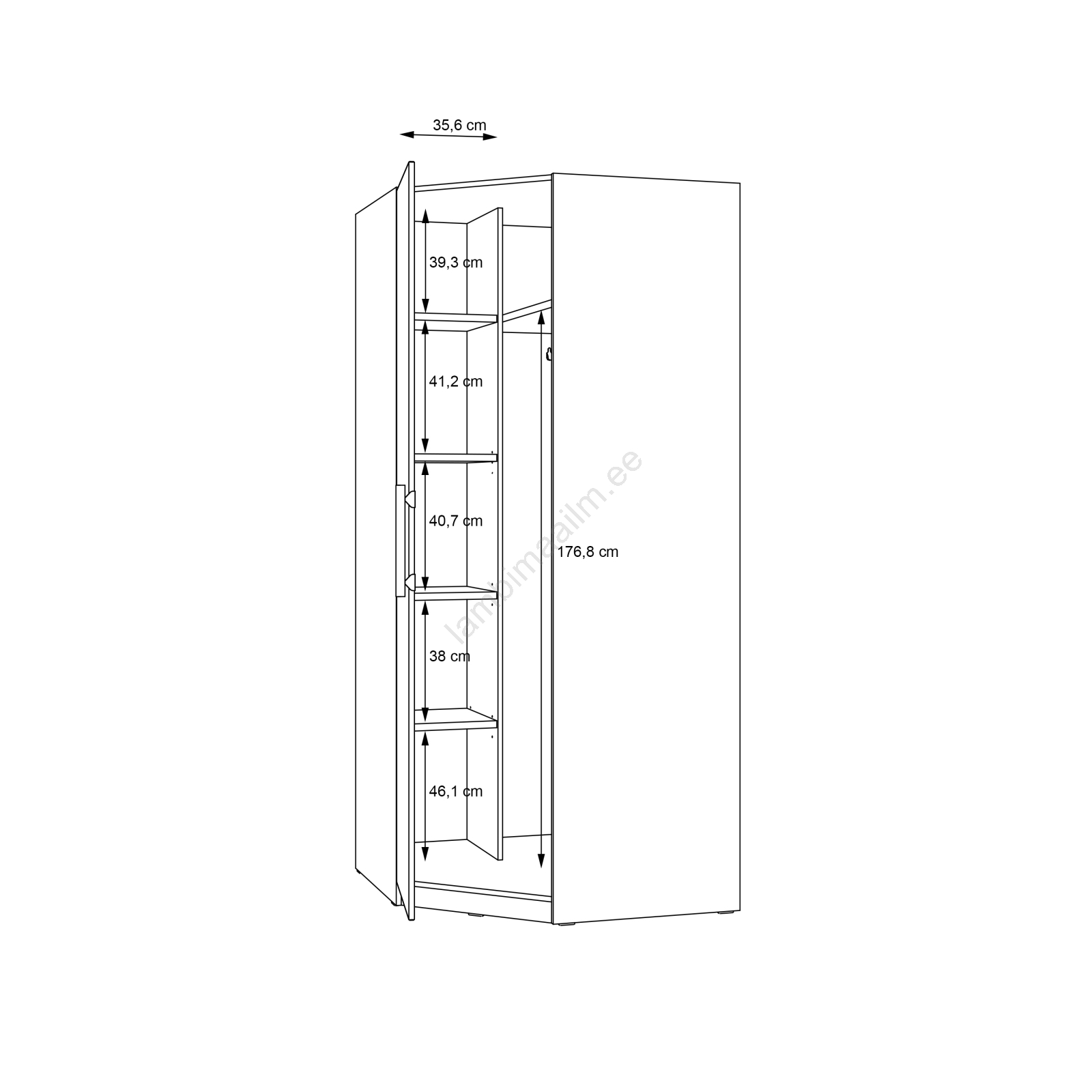 • Kast nr 2: 59,3 x 5,4 x 220,3 cm (35 kg).