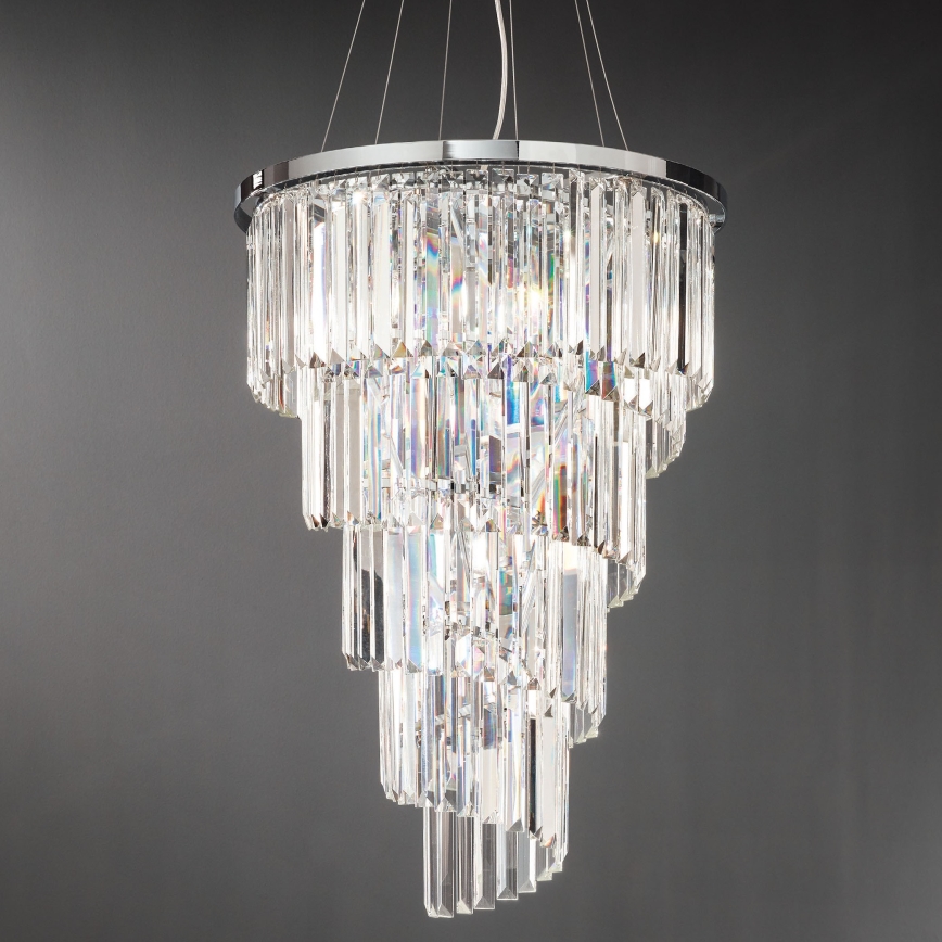 Ondaluce - kristallkroonlühter riputuskaabliga ALEXANDER 10xE14/10W/230V läbimõõt 50 cm läikiv kroom/selge
