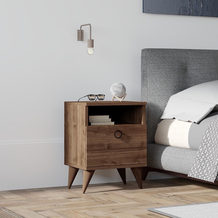 • Valmistatud lamineeritud puitlaastplaadist pähklitoonis, jalad plastikust.