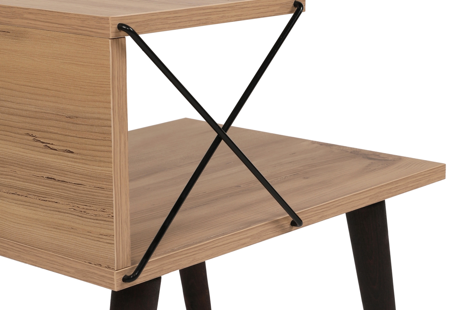 • Tehtud heleda mändi puidu värviga, pruunide jalgade ja musta metalliga.