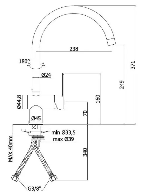 • 180° pööratav kael mugavaks käsitsemiseks kraanikausi juures ja parema ulatuse tagamiseks.
