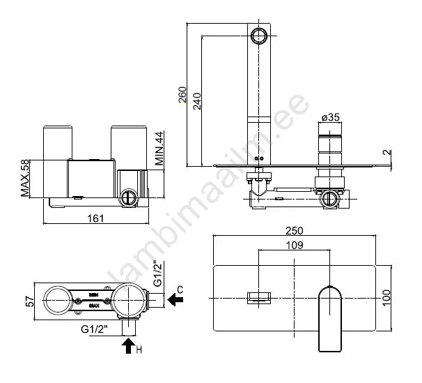 • Komplektis on seinasisene paigalduskorpus seina paigaldamiseks.