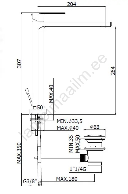 • Kõrge valamu segisti modernse, puhta disainiga.