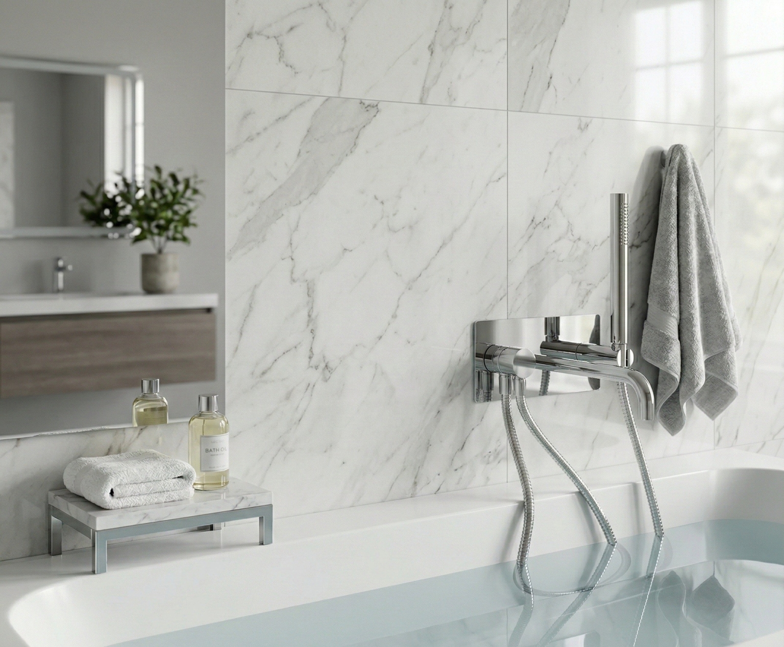 • Seinasse peidetav duši- ja vannisegisti modernses disainis.