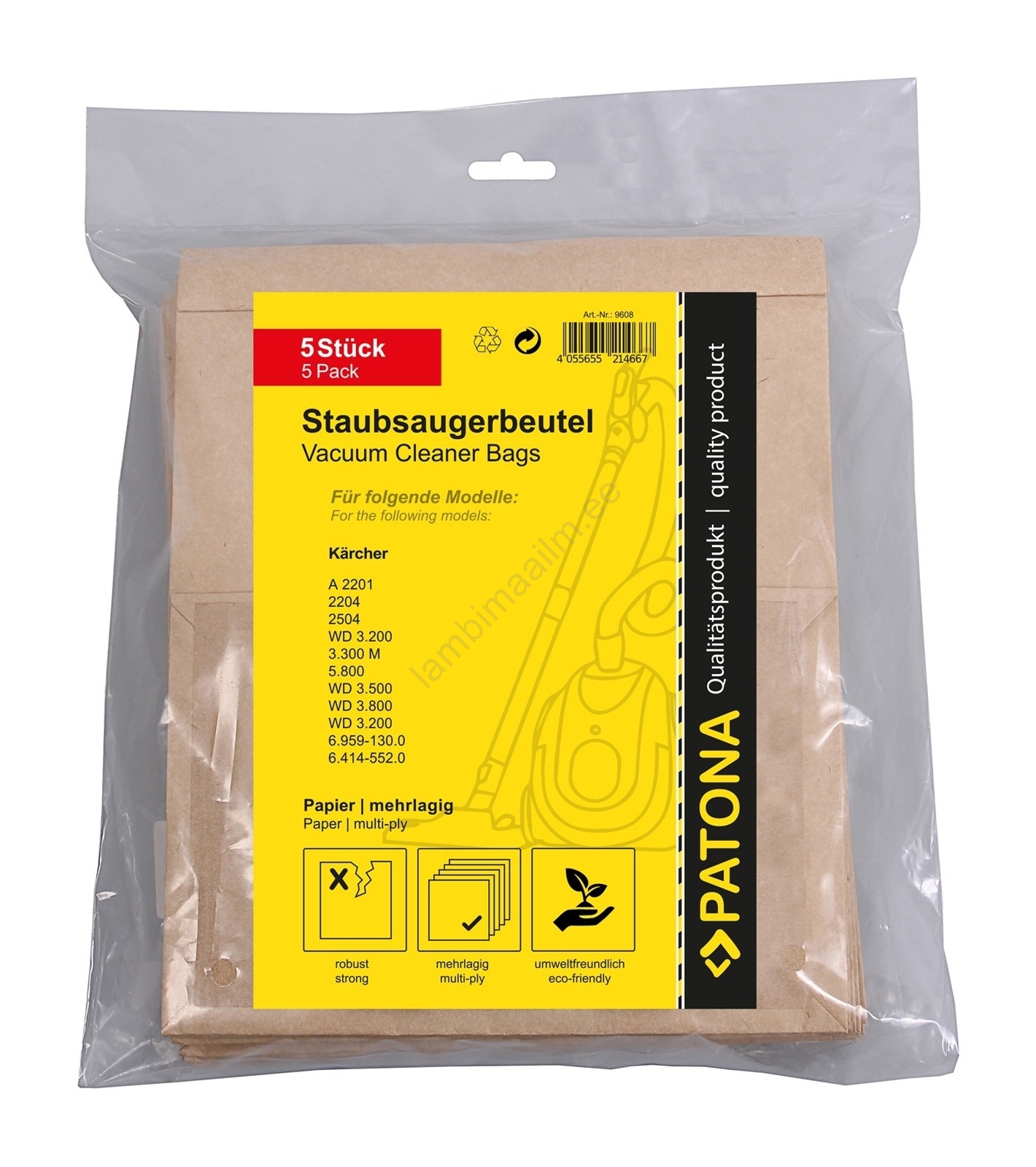 PATONA - Kotid tolmuimejale KÄRCHER WD3/A2201/2204/2504/3.300/5.800 paber - 5 tk | Lambimaailm
