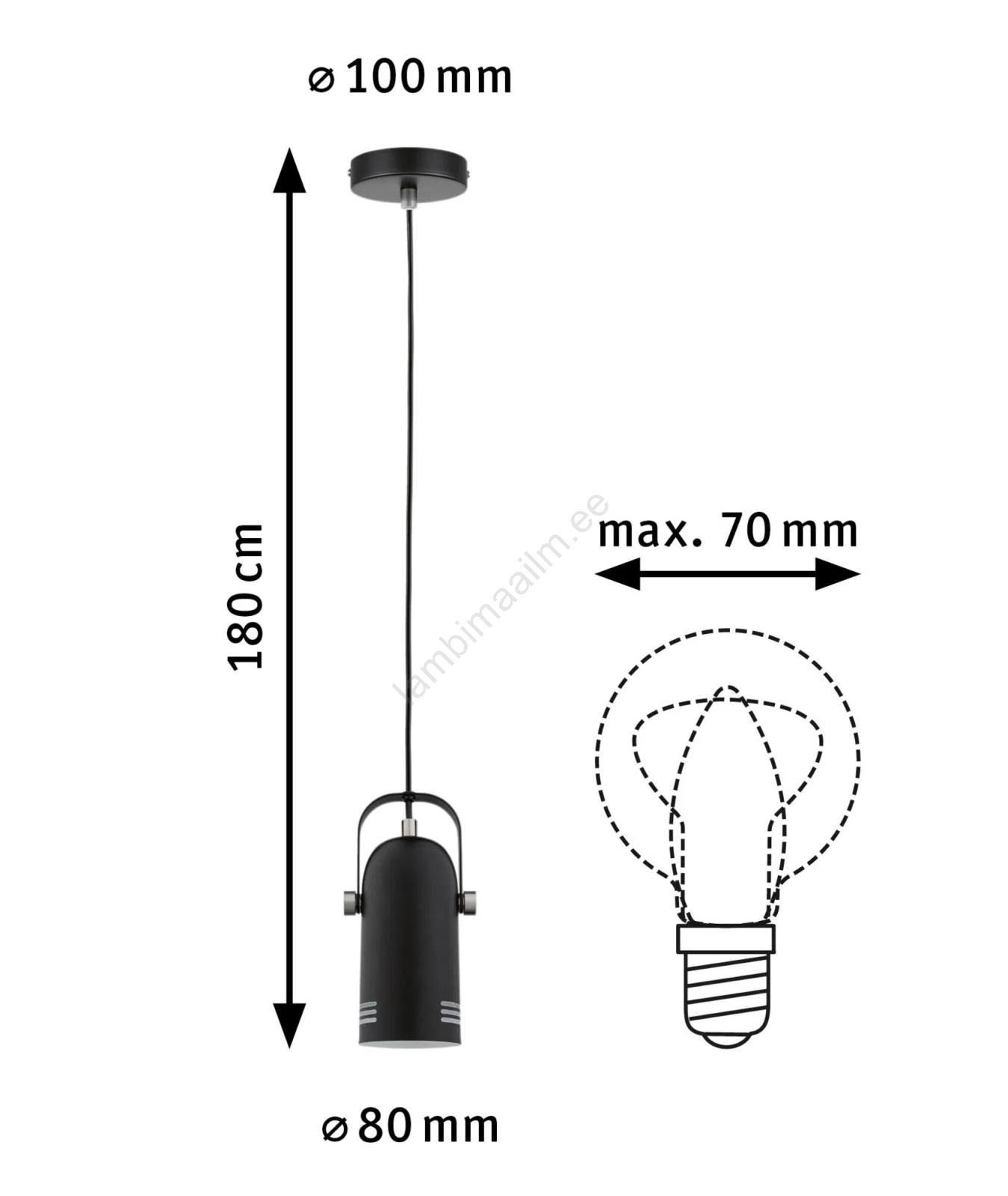 Paulmann 79766 - LED 1xE27/8W rippvalgusti kaablil LAVEA 230V must | Lambimaailm