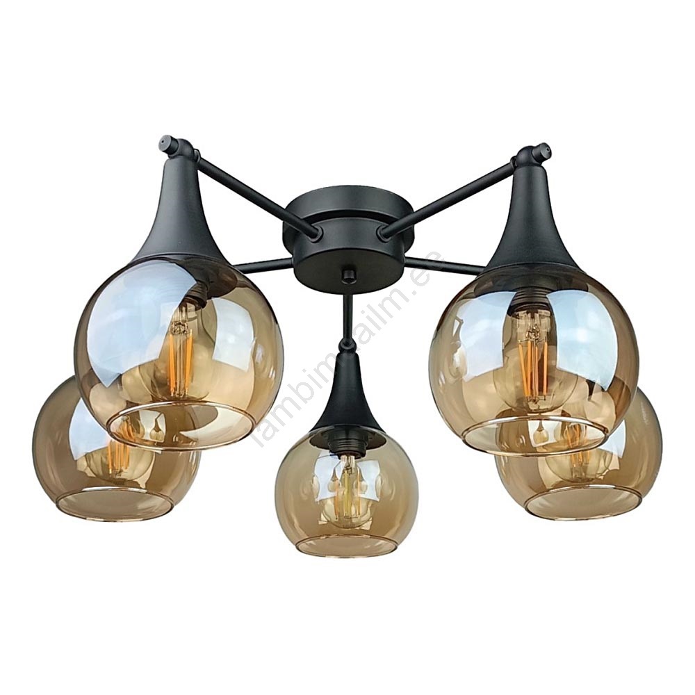 • Pinnale kinnitatav lühter STAR 5xE27/60W/230V must/suitsune beež