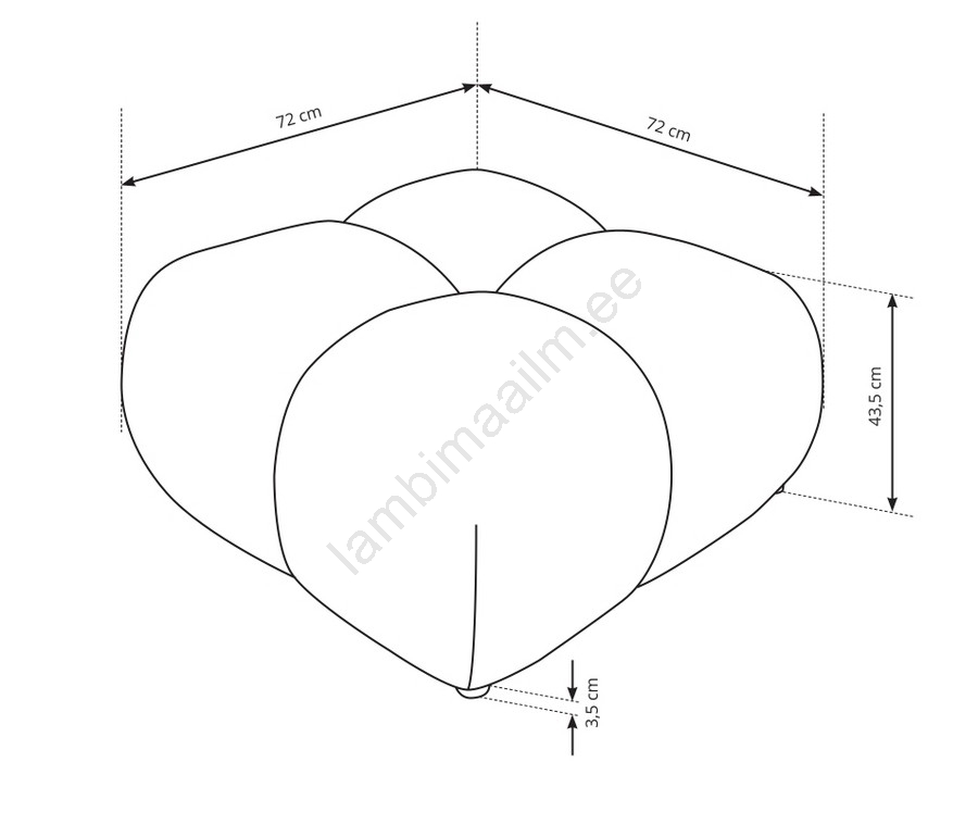 • Istme sügavus 72 cm pakub piisavalt ruumi lõõgastavaks ja ergonoomiliseks istumiseks.