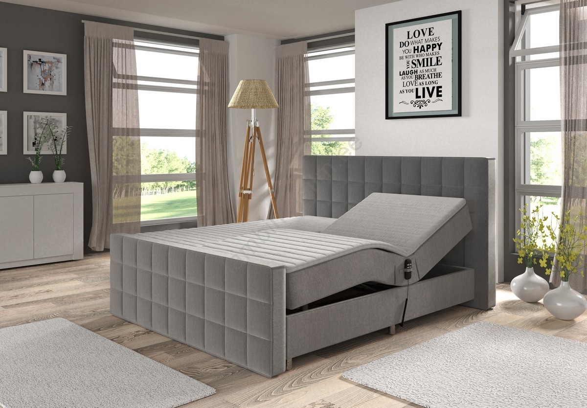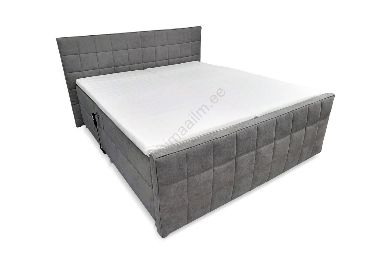 Elektriliselt reguleeritav polsterdatud voodi HELEN 180x200 cm, hall, koos madratsitega ja madratsit