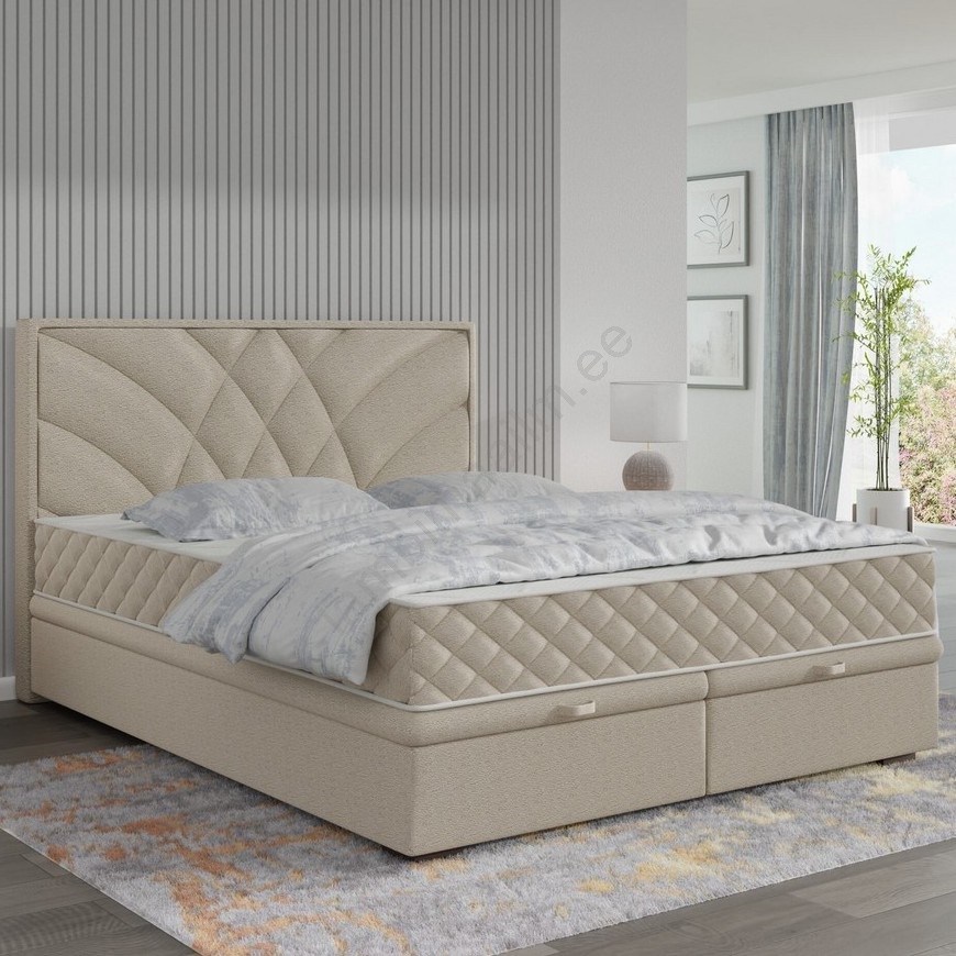 • Polsterdatud voodi GRACE 140x200 cm madratsitega ja panipaigaga, beež