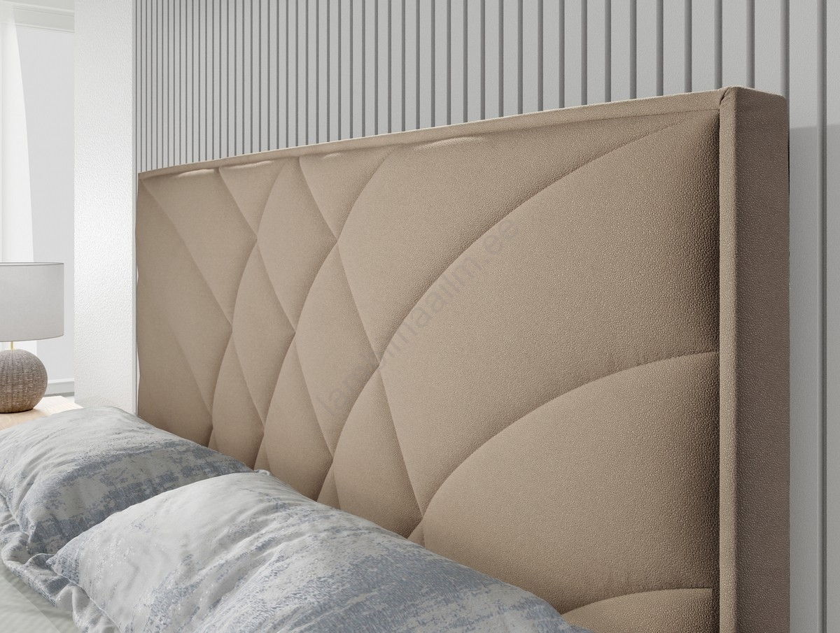 • See voodi köidab pehmejoonelise disaini ja originaalse voodipeatsiga, mille kaarjad õmblused meenutavad elegantset lehvikut või lehemustrit.