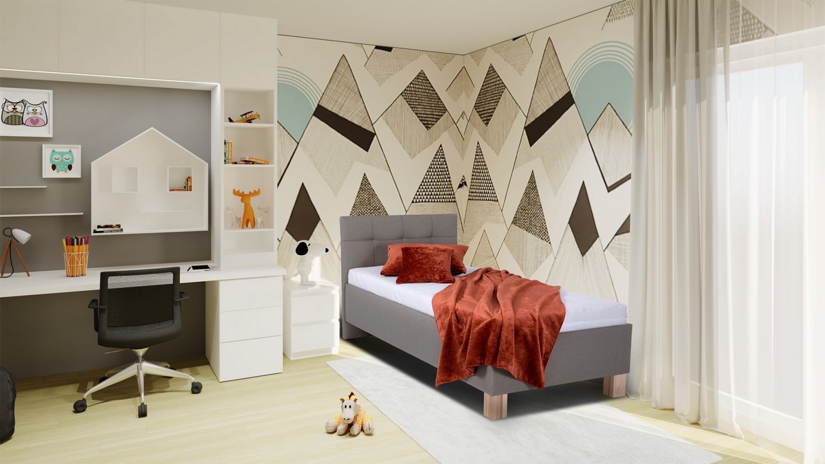 • Polsterdatud voodi madratsiga ja panipaigaga MARIA ONE 90x200 cm hall