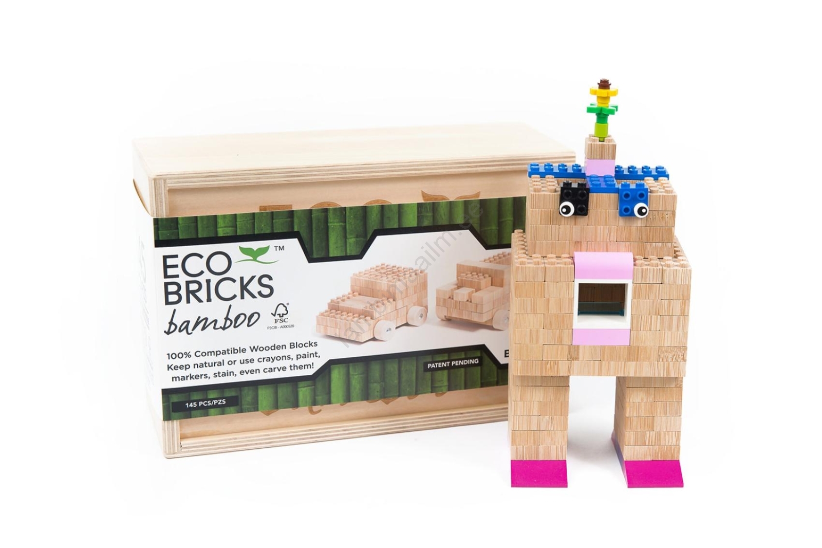 Puidust ehituskomplekt ECO BRICKS, 145 tk | Lambimaailm