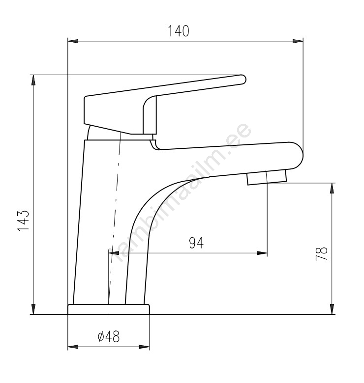 • Lauapinnale paigaldatav valamusegisti ilma äravooluta.