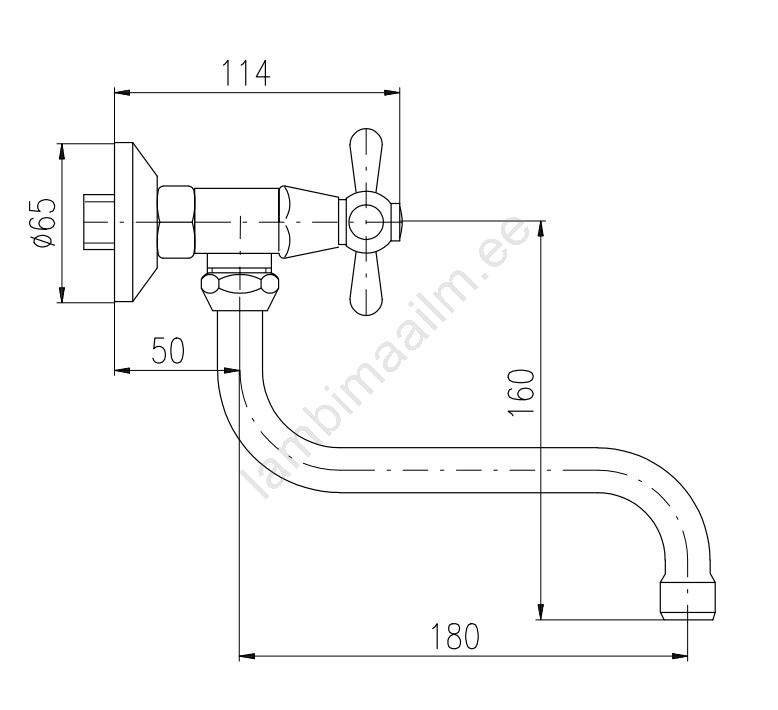 • Seinale paigaldatav köögi- ja vannitoavalamu segisti ümmarguse väljavooluotsaga, pikkus 180 mm.