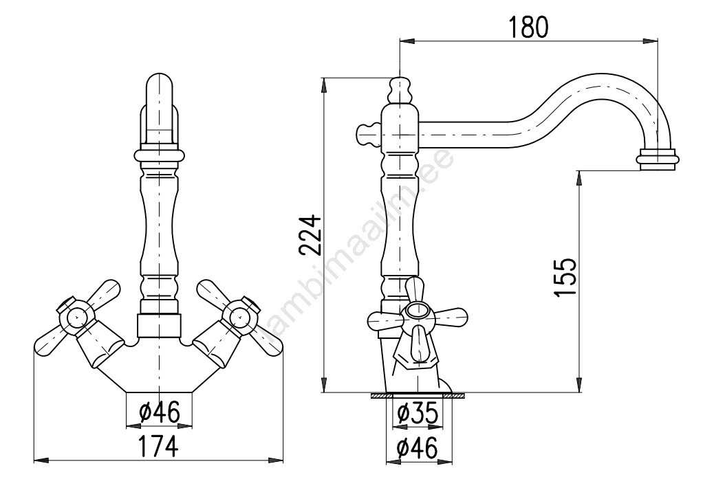 • Valamu lauapealne segisti pööratava otsikuga ja CLICK-CLACK 5/4" äravooluga.
