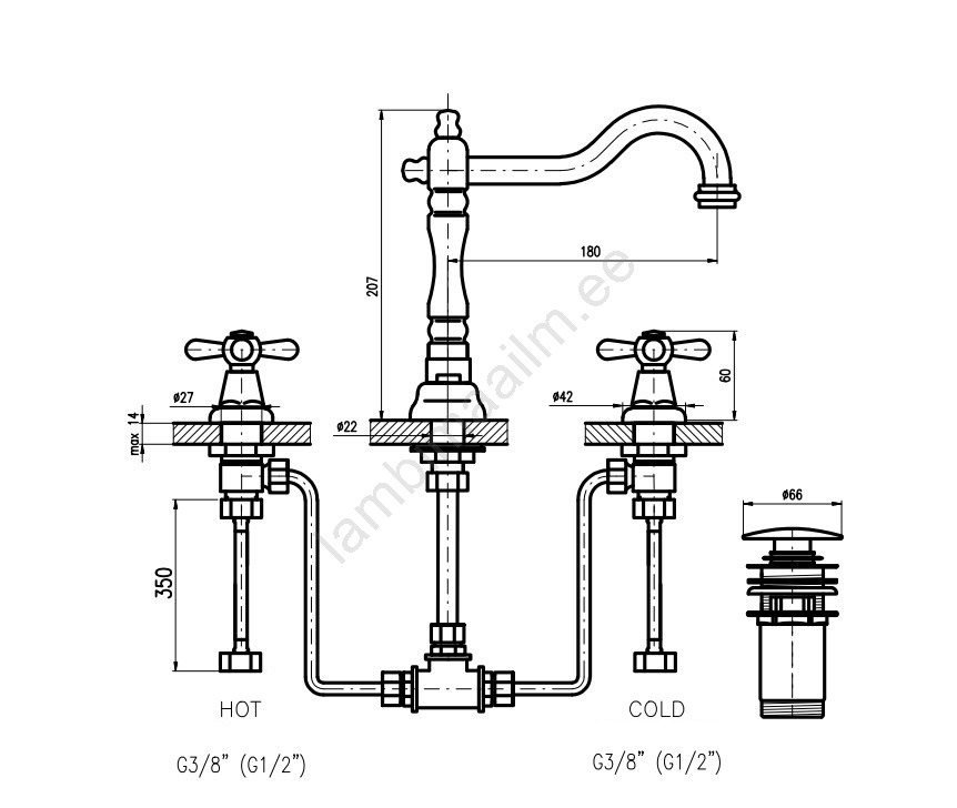 • See on varustatud 1/2" keraamiliste kassettidega.