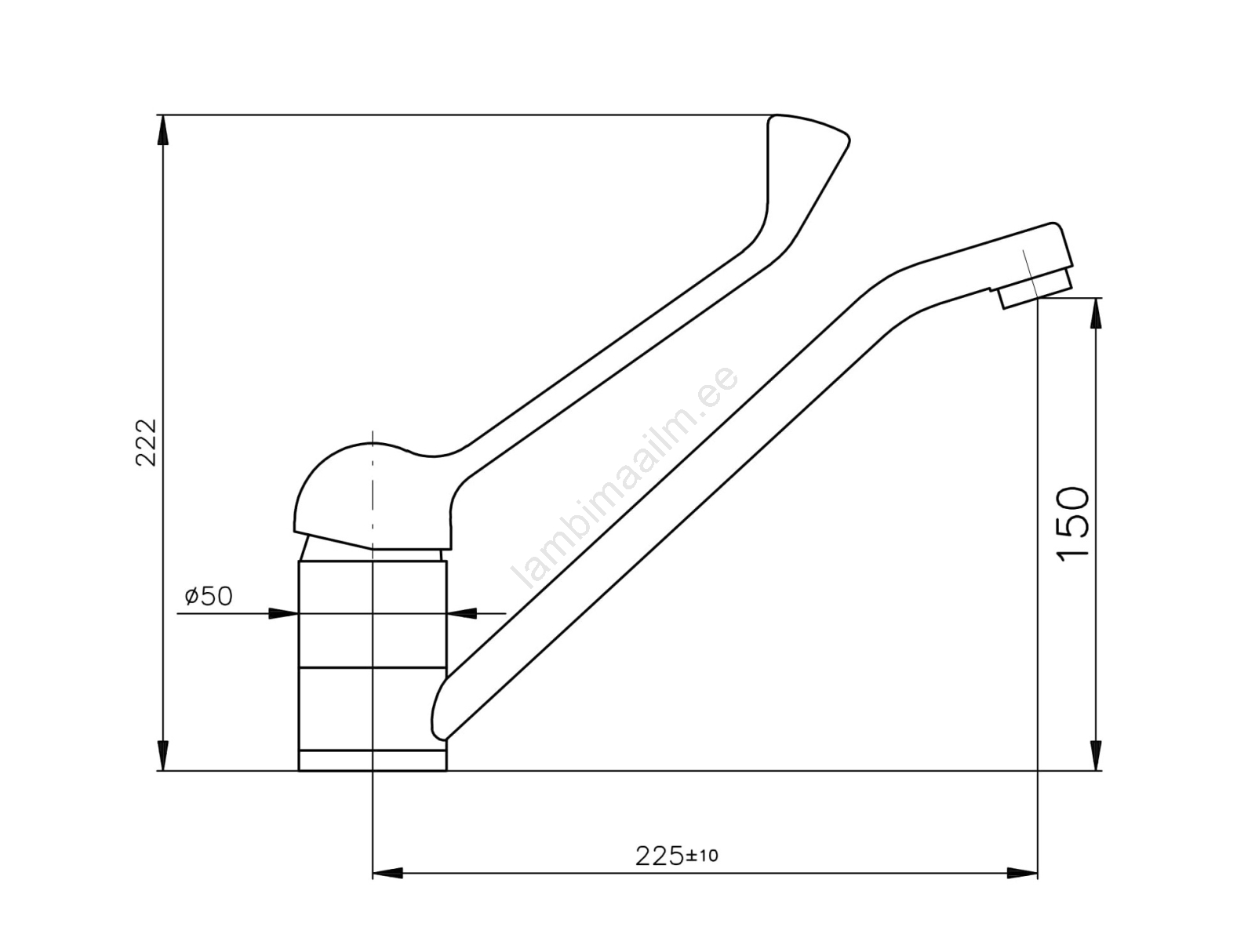 • Lauale paigaldatav valamusegisti ilma äravooluta, varustatud meditsiinilise hoovaga.