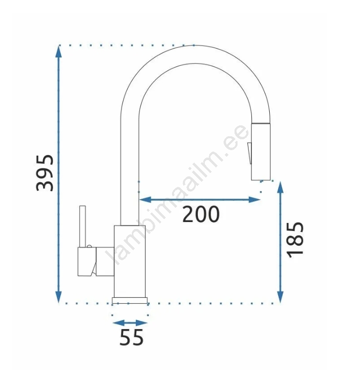 • Ühehoobiga köögikraan kõrge veesurve ja pöörleva kaelaga.