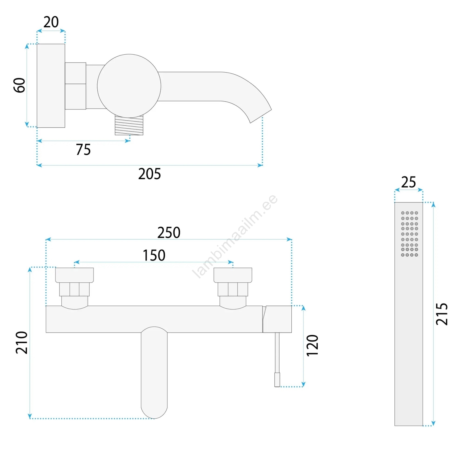 • Veeühenduste keskvahe: 150 mm.