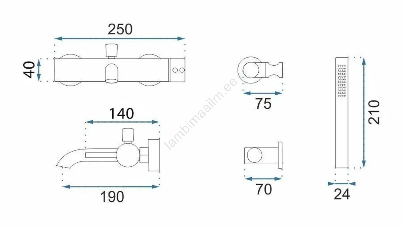 • Komplekt sisaldab: vannisegisti, käsidušši, dušivoolikut (190 mm), käsiduši hoidikut.