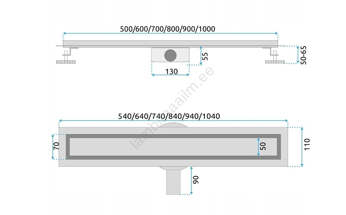 • Tänu kõrgust reguleeritavatele jalgadele (50–65 mm) saab äravoolu hõlpsasti kohandada erinevatele põrandatingimustele.