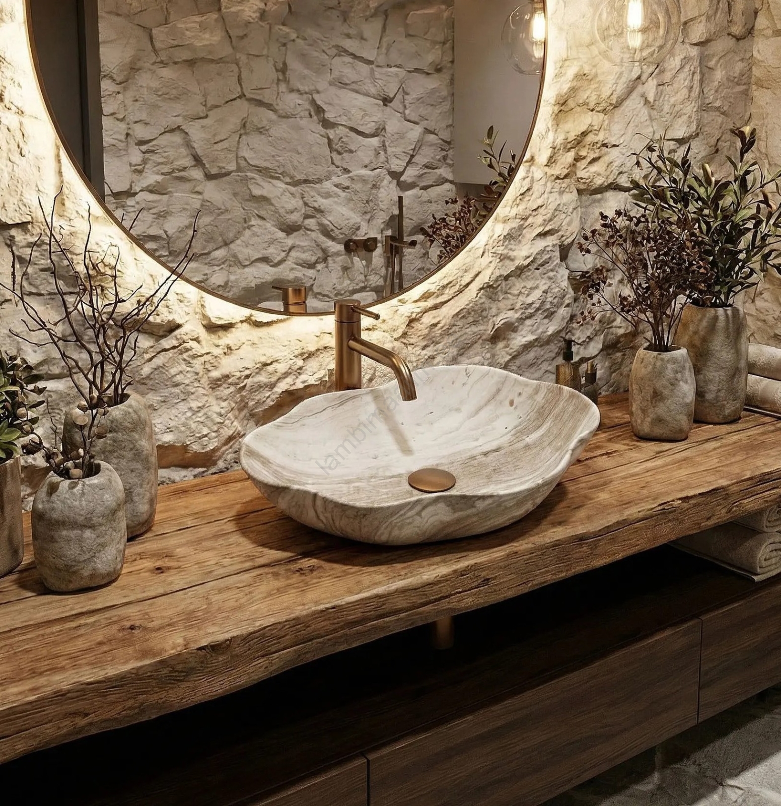 • REA-U0617 - Lauale paigaldatav valamu PEARL 38x50,5 cm keraamiline/beež/kiviimitatsioon